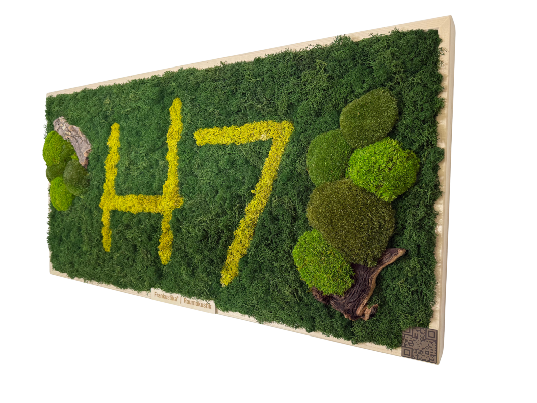 KILIAN – named after Saint Kilian, the patron saint of Würzburg, combines nature, tradition and acoustics in perfect harmony. With real moss, which is not only visually impressive but also effectively absorbs sound, KILIAN becomes a natural highlight in every room.