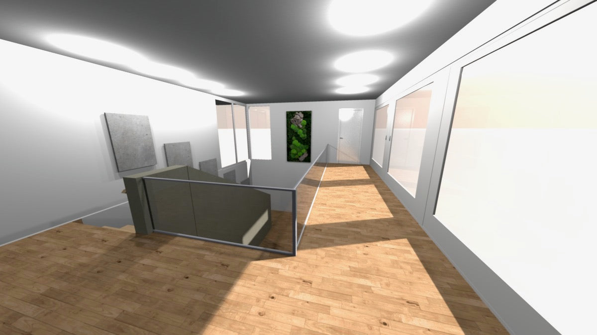 Diese Darstellung zeigt ein konkretes Akustikkonzept für einen privaten Wohnbereich mit offener Architektur – mit KILIAN als Moosabsorber im Sonderformat. Ziel ist eine spürbare Beruhigung des Raumklangs bei gleichzeitigem Design-Statement. Ergänzend sind weitere Akustikelemente im Konzept vorgesehen, die gemeinsam ein stimmiges Gesamtbild aus Wirkung und Gestaltung ergeben. Planung und Ausführung sind so gedacht, dass sie sich in Raum, Stil und Budget einfügen.